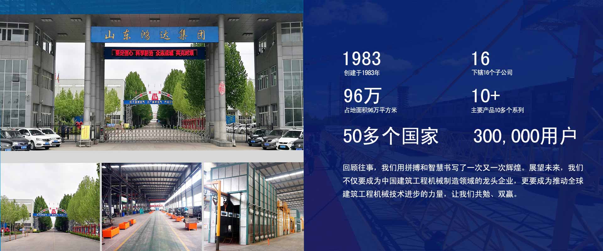 山東鴻達(dá)建工集團(tuán)有限公司創(chuàng)建于1983年,是一個(gè)集建筑工程機(jī)械制造業(yè)、食品加工業(yè)、建筑房地產(chǎn)業(yè)、餐飲服務(wù)業(yè)、聚氨酯新型保溫材料等為一體的多元化大型企業(yè)集團(tuán),下轄16個(gè)子公司,占地面積96萬(wàn)平方米,建筑面積68萬(wàn)平方米。